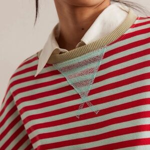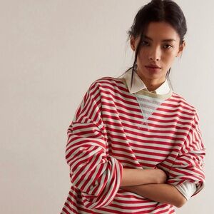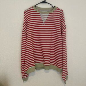 Stylish striped sweatshirt. Relaxed fit with long sleeves. Perfect for casual wear. No flaws at all! I really love this sweater, but it’s just a bit too oversized for my liking.
