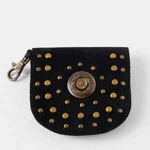 Free People Studded Clip On Wallet Leather in Color: Black NWT