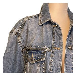 Free People Studded Denim Trucker Jacket Blue Medium Wash Distressed Denim XS