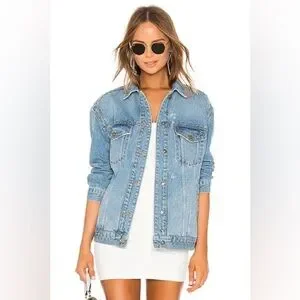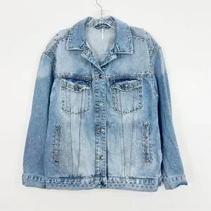 Free People Studded Denim Trucker Jacket in Blue Size Small