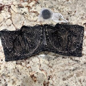 Beautiful black lace bandeau bra. Delicate floral pattern. Ideal for layering.