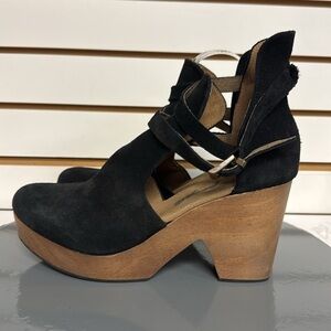 Free People Suede Cedar Clog Black Straps Size 40.5/10.5US