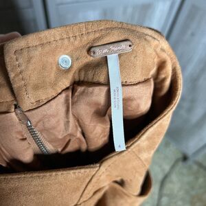 Free People Suede Dress Midi Jumper Leather Cognac Color Boho Sz 4