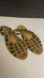 Slip on these elasticized brown suede shoes with open toe and heel. Straps slip over the heels to secure these flexible sandals to your feet.