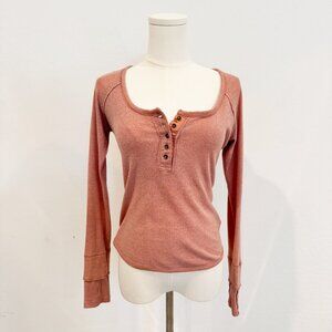 Free People Sugar & Spice Pointelle Long Sleeve Henley Thermal Top Casual Small