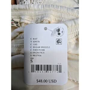 Free People Sugar Swizzle half slip skirt in ivory. Soft and lightweight with elastic waist and wide floral lace trim at hem. Perfect for layering under dresses or worn alone as a boho mini. Brand new with tag, originally $48.
