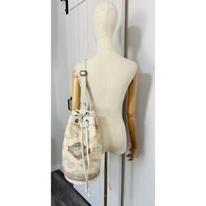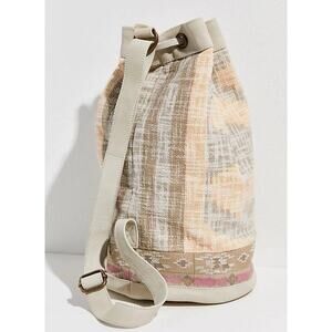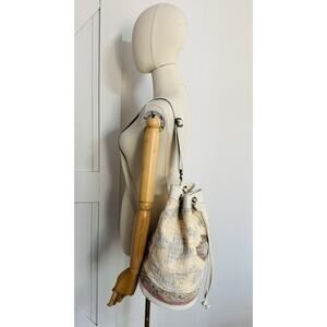 Free People Summer Days Sling Bucket Bag Ivory Leather Trim Purse Bag $108