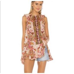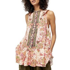 Free People Summer In Tulum Floral Mini Tunic Dress In Pink Combo Size Medium