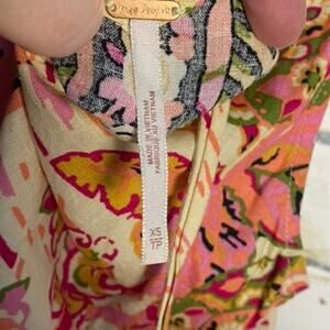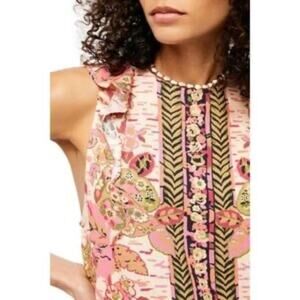 Free People "Summer In Tulum" Linen Blend Mixed Print Ruffle Sleeveless Tunic