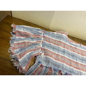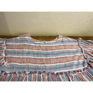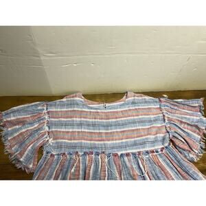 The Free People Summer Nights Striped Cotton Mini Babydoll Tunic Dress in Medium is a stylish and comfortable option for the summer season. Made with 100% cotton, this dress features a flattering round neck, short bell sleeves, and ruffle accents for a trendy touch. The multicolor striped pattern, along with the oversized and lightweight design, makes it perfect for casual outings or party occasions. With a bohemian beachy theme, this mini dress is a great choice for those looking for a chic and effortless outfit.pre owned good condition we ship fast measurements are in the pictures