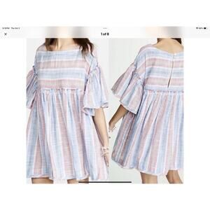 Free People Summer Nights Striped Cotton Mini Babydoll Tunic Dress Medium