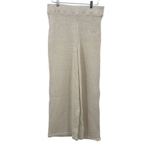 Free People Summer Nights Wide Leg Pants Ivory Size L Large Ribbed Chunky Knit