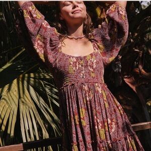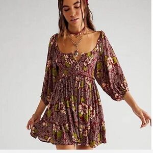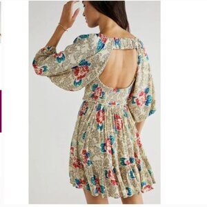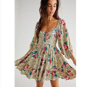 Free People Summer Picnic Puff Sleeve Floral Mini Dress Women's Medium Stretch