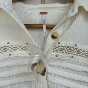 Free People Summer Stars Buttondown Blouse Top Size S in Ivory Relaxed Boxy Fit