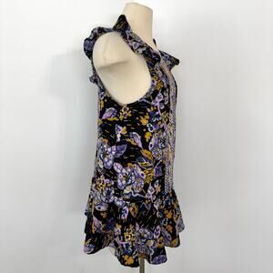 Free People Summer in Tulum Linen Tunic Top Ruffle Tie Back in Combo Floral XS