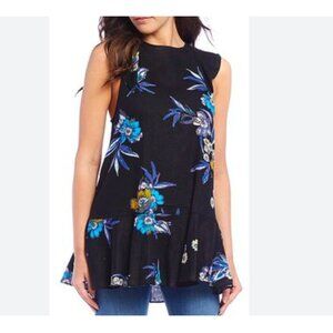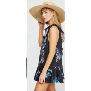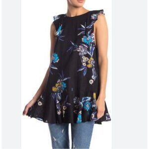 Free People Summer in Tulum Tunic Mini Dress Ruffle Sleeveless Black Floral M