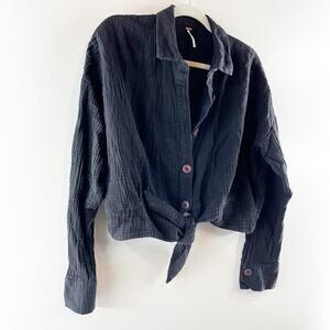 Free People Sun Streaks Long Sleeve Gauzy Cotton Button Up Shirt Black Medium