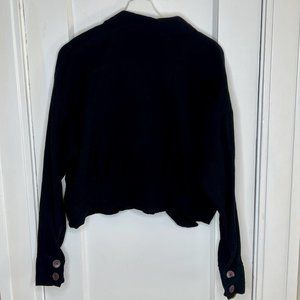 Brown buttons down front and at sleeve cuffs.