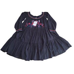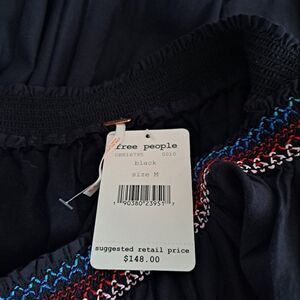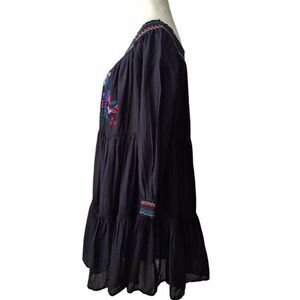 Free People Sunbeam Black Embroidered Off Shoulder Boho Peasant Tunic Dress M