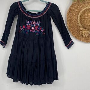 Free People Sunbeam Mini Dress Smocked Embroidered Long Sleeve Black Multi XS