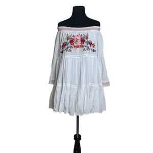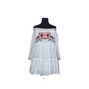 Free People Sunbeams Embroidered Off Shoulder Boho Mini Dress size XS