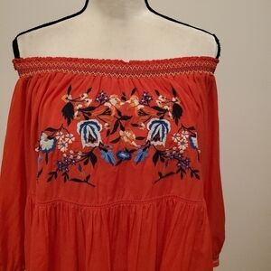 Free People Sunbeams Off the shoulders Embroidered Bohemian Mini Dress Sz Small