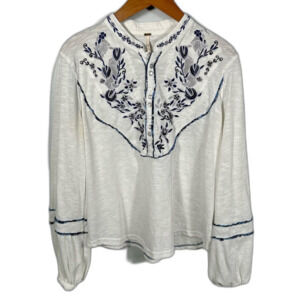 Free People Sundance Embroidered Henley Blouse Top Size Medium