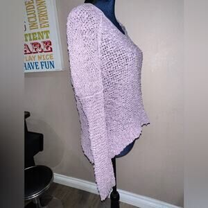 Free People Sunday Shore Lavender Open Weave Sweater V Neck Slouchy Size Small