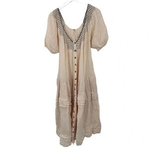 Free People Sunday Stroll Maxi Dress Buttondown Oversized Embroidered S B1487