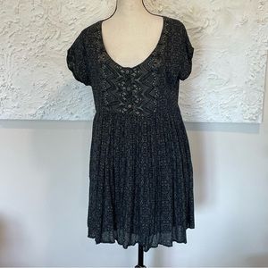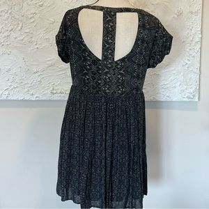 Free People Sundown Boho babydoll Festival dress w/ Pockets Sz Small Black.
