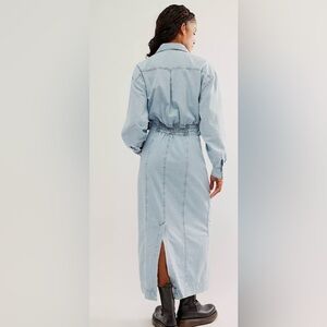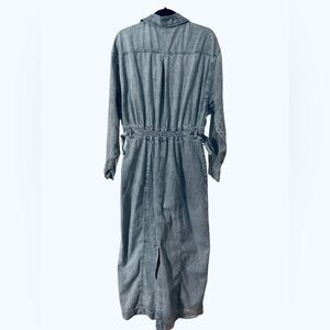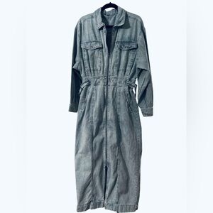 Add a cool and classic touch to your casual dress collection with this timeless maxi featured in a staple, soft denim fabrication with defined pocket detailing for a utility-inspired design and zip-front closure for added versatility.