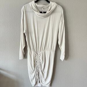 Free People Sundown Mini Dress Ruched Drawstring Side Cowl Neck Long Sleeve