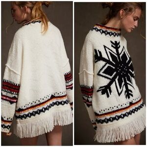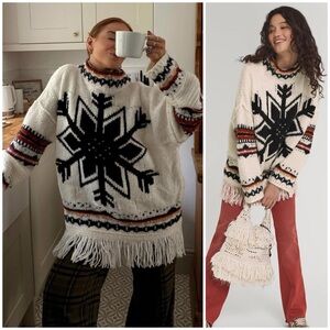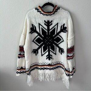 Free People Sundown Sweater Fringe Snowflake SZ L