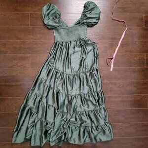 Free People Sundrenched Maxi Dress Womens L Moss Green Whimsical Romantic Castle