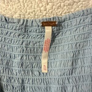 Free People Sundrenched Short-Sleeve Floral Maxi Dress Sky Blue Puff Sleeve