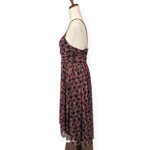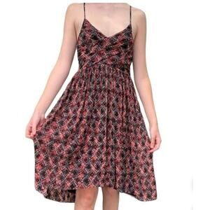 Free People Sundress Cross Front Hi-Low Leaf Print Red Black Women's Size Large