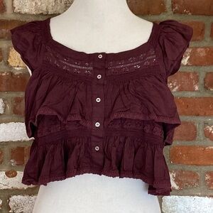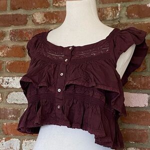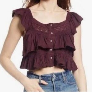 Free People Plum Wine Sunny Days Ahead Ruffle Crop Top
