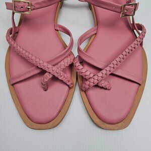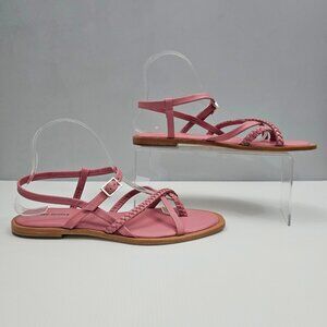 Free People Sunny Days Flat Sandal Womens 9 Pink Braided Leather Boho Casual NEW