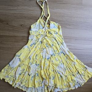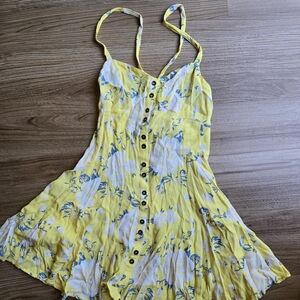 Free People FP X Jenai Mini Dress Cute summer dress with an adorable sunny floral pattern, side pockets, buttons, adjustable tie back Beautiful piece for summer 100% rayon