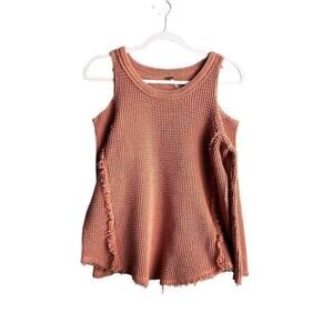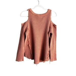 Free People Sunrise Cold Shoulder Sweater Women's S Coral Raw Hem Oversized