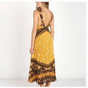 Free People maxi dress, Sunrise Oblivion dress, Free People boho dress, antique gold floral dress, festival outfit, summer , harvest maxi dress, crisscross back maxi, cutout maxi dress, size 10 Free People dress, wedding guest bohemian dress, Free People yellow dress