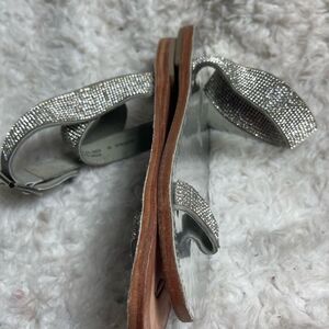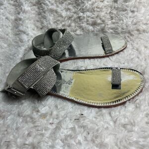 Free People Sunset Cruise Leather Sandals Silver Rhinestones ankle strap toe loop SZ7.5.Pre owned in good used condition signs of wear on the outer sole see all pictures any questions please message