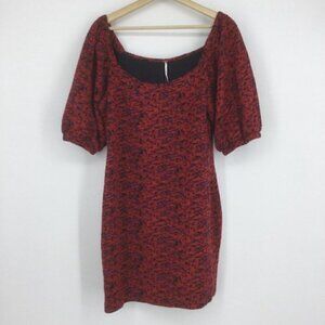 Free People Sunset Red Multi Print Puff Sleeve Bodycon Mini Dress. Size Large, new with tags!