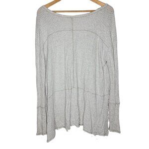Free People Sunset Park Drippy Thermal Top Light Gray Long Sleeve Women's Small