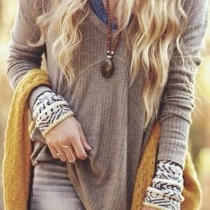 Free People Sunset Park Thermal Long Sleeve Waffle Knit Taupe