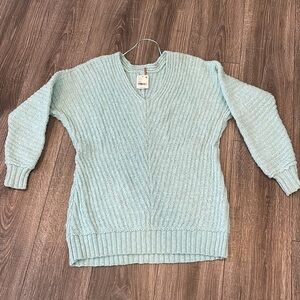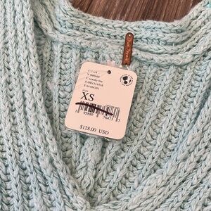 Free People Sunset V-Neck Cotton Seasky Blu Sweater Size XS (NWT)