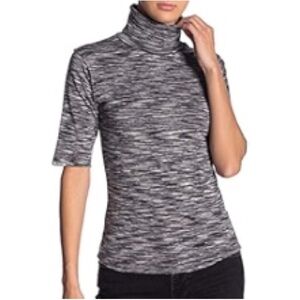 Free People Sunshine Space Dye Distressed Crop Elbow Sleeve Turtleneck