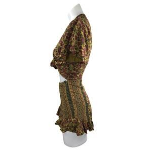 Free People Surf Date Multicolor Floral Short Sleeve Cutout Tie Romper Shorts 4