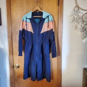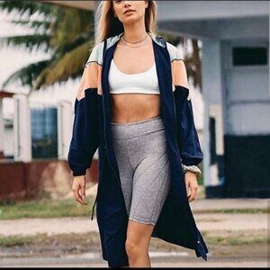 Free People Surfrider Windbreaker Women XS Blue Color Block Combo Jacket Long