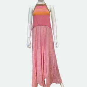 Free People Surfs Up Maxi Dress Womens Large Flamingo Pink Striped, Halter, Open Back New with tags, $168